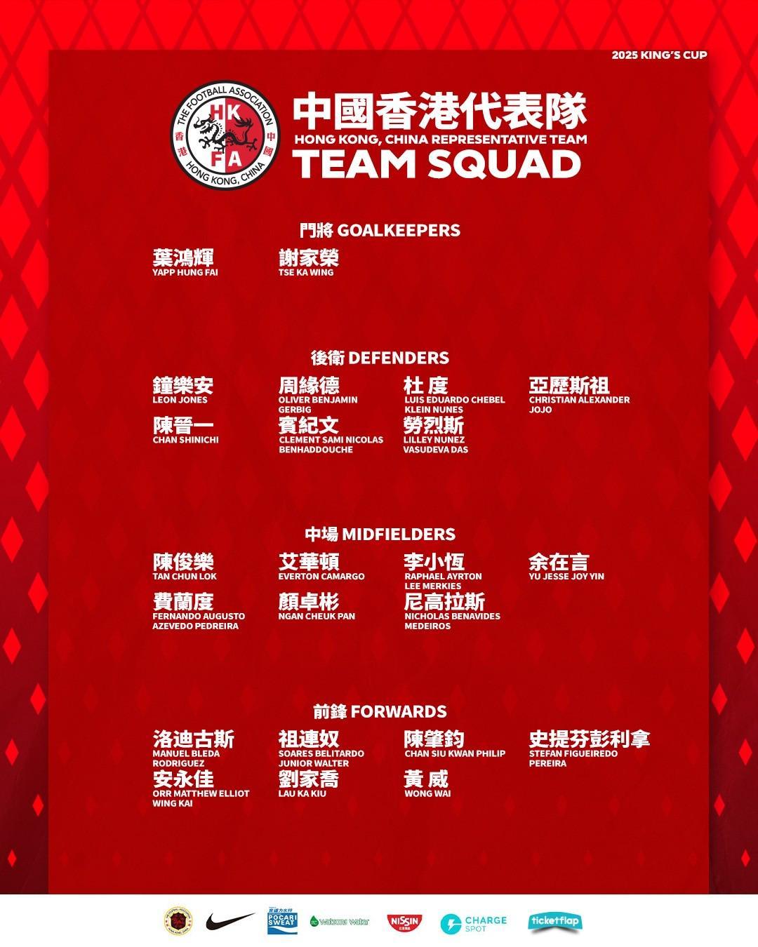 开云体育-港队参加泰王杯23人名单:陈晋一领衔,中超、中甲8人入选